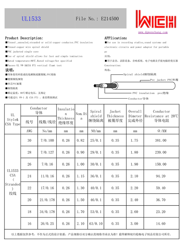 东莞市稳畅电子制品有限公司是一家专业的UL1533生产厂家,主营:UL1533!所有产品都是按照质量管理体系和环保管理体系实行严格控制管理.