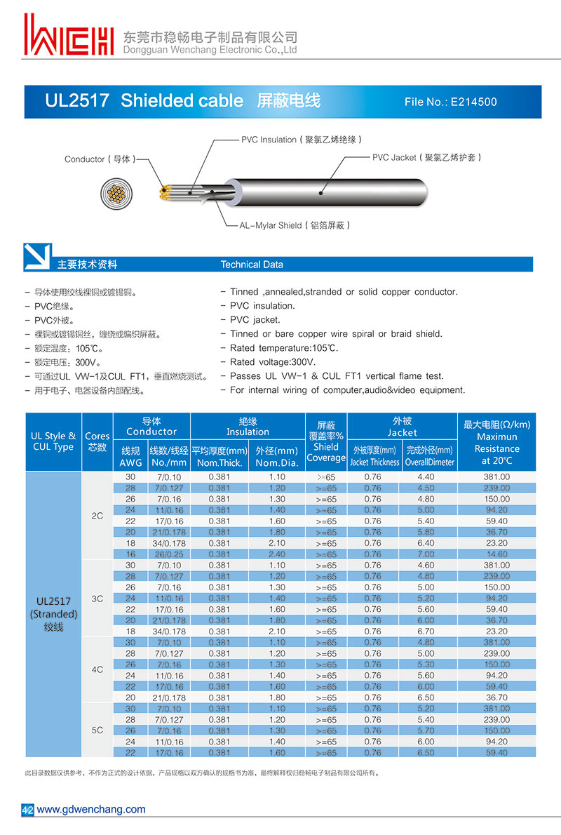 您的位置: 首页 ->  产品中心  -> 多芯线  -> UL2517 多芯线