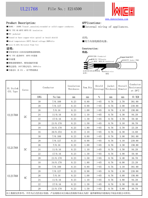 您的位置: 首页 ->  产品中心  -> 多芯线  -> UL21768