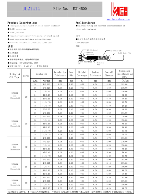 您的位置: 首页 ->  产品中心  -> 多芯线  -> UL21414