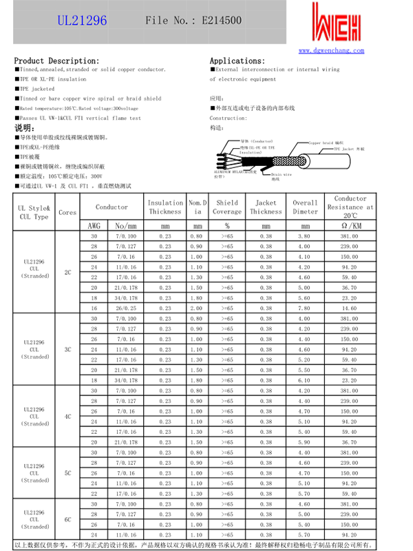 您的位置: 首页 ->  产品中心  -> 多芯线  -> UL21296