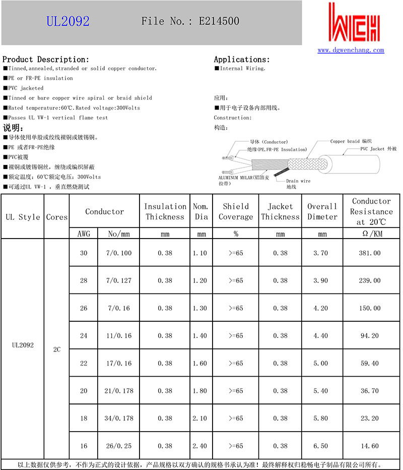 东莞市稳畅电子制品有限公司是一家专业的UL2092 PVC多芯屏蔽线生产厂家,主营:UL2092 PVC多芯屏蔽线!所有产品都是按照质量管理体系和环保管理体系实行严格控制管理.