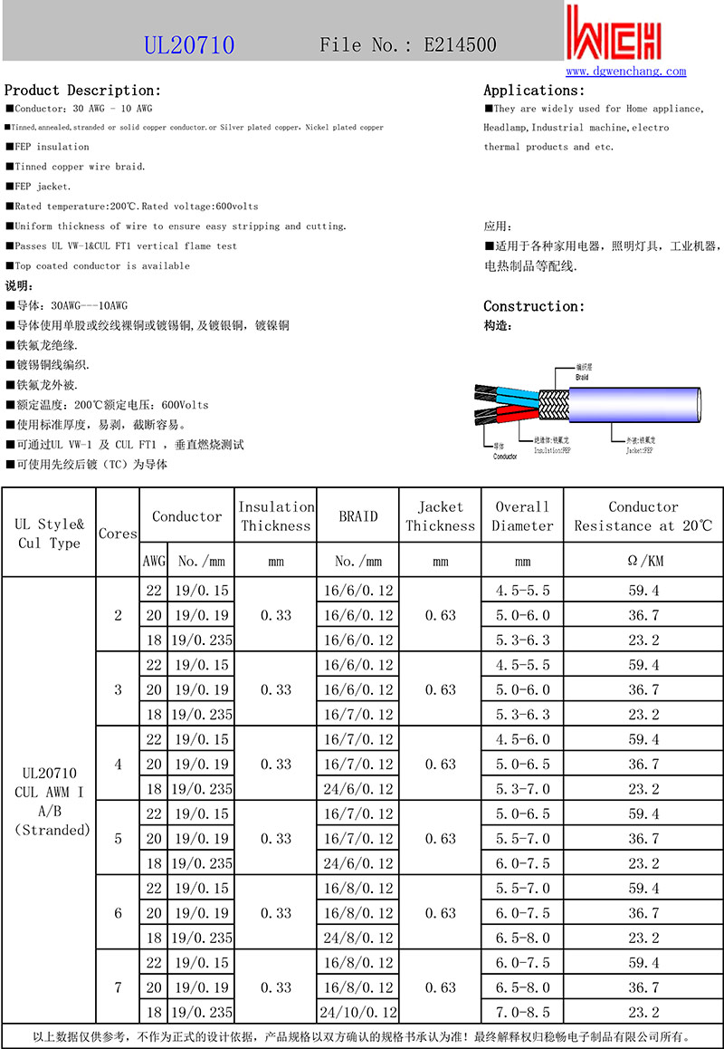 东莞市稳畅电子制品有限公司是一家专业的UL20710 铁氟龙高温屏蔽线生产厂家,主营:UL20710 铁氟龙高温屏蔽线!所有产品都是按照质量管理体系和环保管理体系实行严格控制管理.