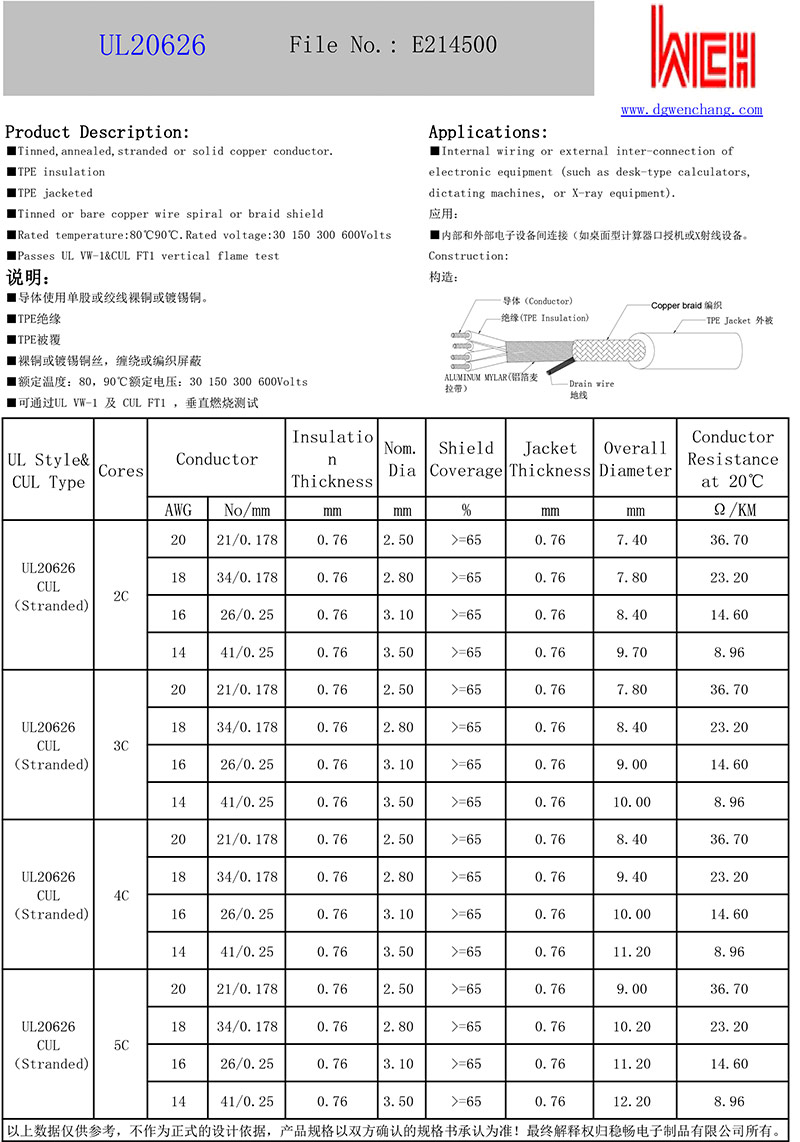 您的位置: 首页 ->  产品中心  -> 多芯线  -> UL20626 TPE无卤屏蔽线