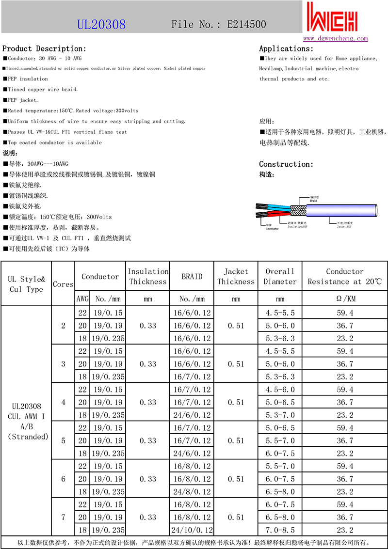 东莞市稳畅电子制品有限公司是一家专业的UL20308 铁氟龙高温屏蔽线生产厂家,主营:UL20308 铁氟龙高温屏蔽线!所有产品都是按照质量管理体系和环保管理体系实行严格控制管理.