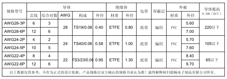 ■绝缘使用ETFE铁氟龙树脂具备耐热耐寒,抗腐蚀和超强耐弯折性