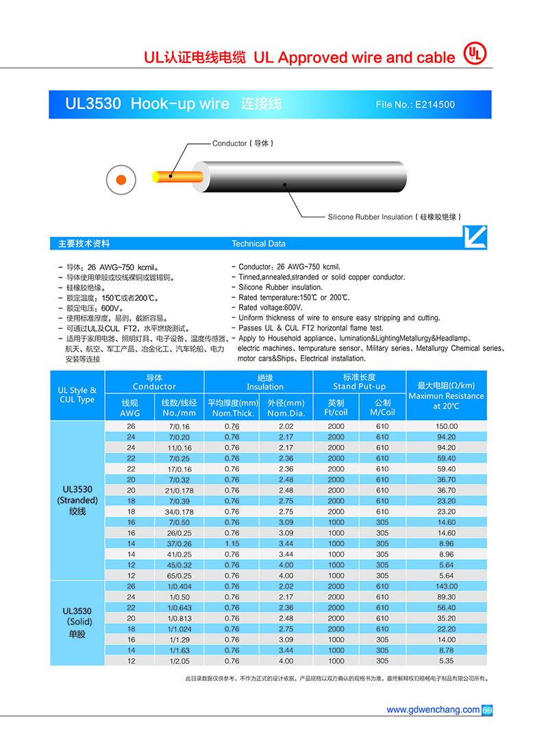 您的位置: 首页 ->  产品中心  -> 电子线  -> UL3530 硅胶电子线