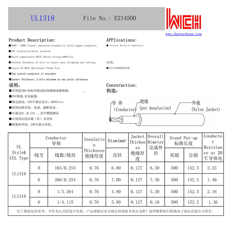 UL1318PVC绝缘尼龙被覆电子线