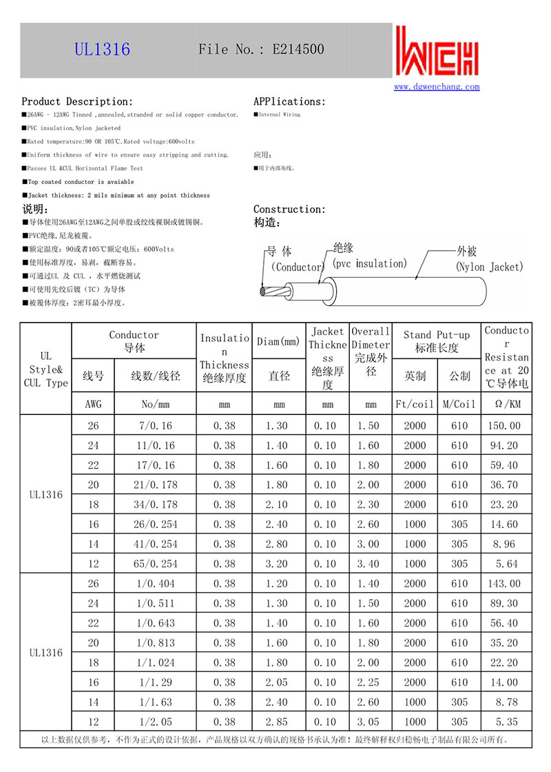 东莞市稳畅电子制品有限公司是一家专业的UL1316PVC绝缘尼龙被覆电子线生产厂家,主营:UL1316PVC绝缘尼龙被覆电子线!所有产品都是按照质量管理体系和环保管理体系实行严格控制管理.