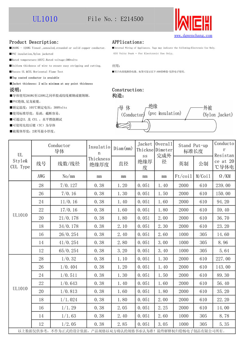 东莞市稳畅电子制品有限公司是一家专业的UL1010PVC绝缘尼龙被覆电子线生产厂家,主营:UL1010PVC绝缘尼龙被覆电子线!所有产品都是按照质量管理体系和环保管理体系实行严格控制管理.