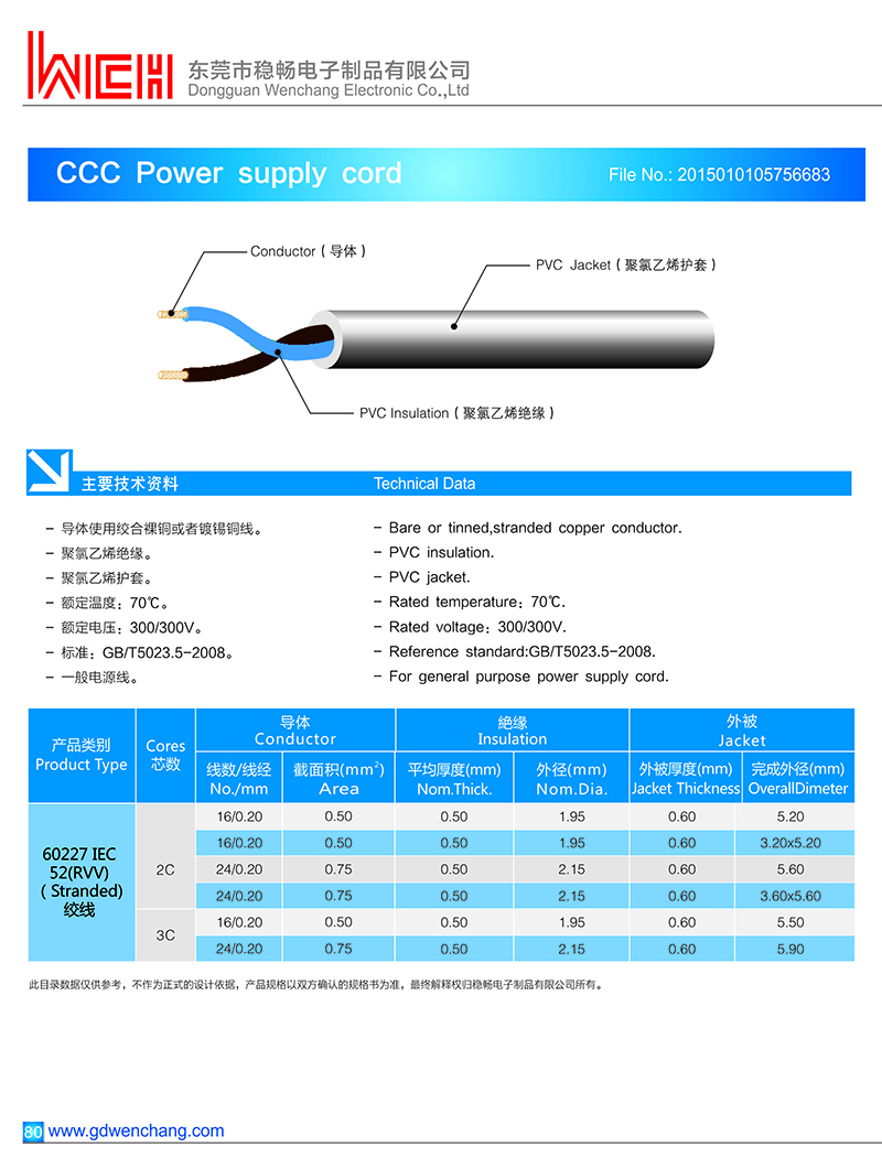 东莞市稳畅电子制品有限公司是一家专业的CCC 60227 IEC52(RVV) 电源线生产厂家,主营:CCC 60227 IEC52(RVV) 电源线!所有产品都是按照质量管理体系和环保管理体系实行严格控制管理.